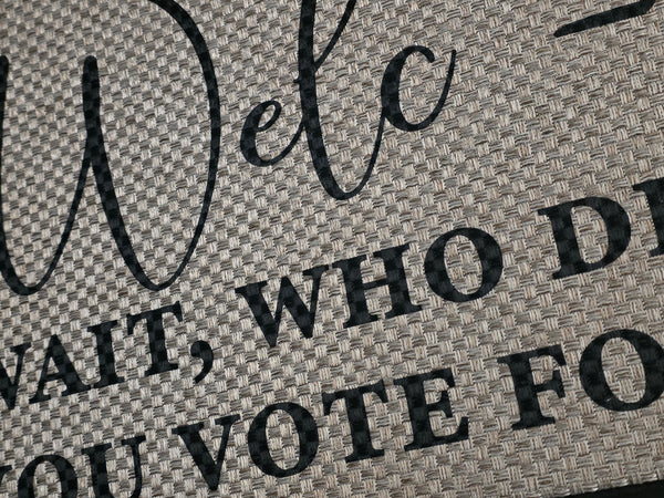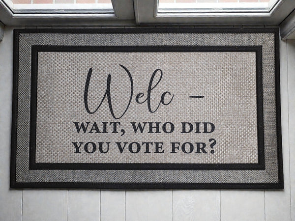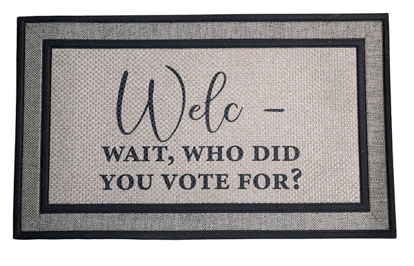 This funny welcome mat featuring the phrase “Welcome – Wait, Who Did You Vote For?” is the perfect mix of sarcasm and style. Whether you’re inviting laughs, starting conversations, or just keeping things interesting at the front door, this mat makes a bold (and hilarious) first impression.